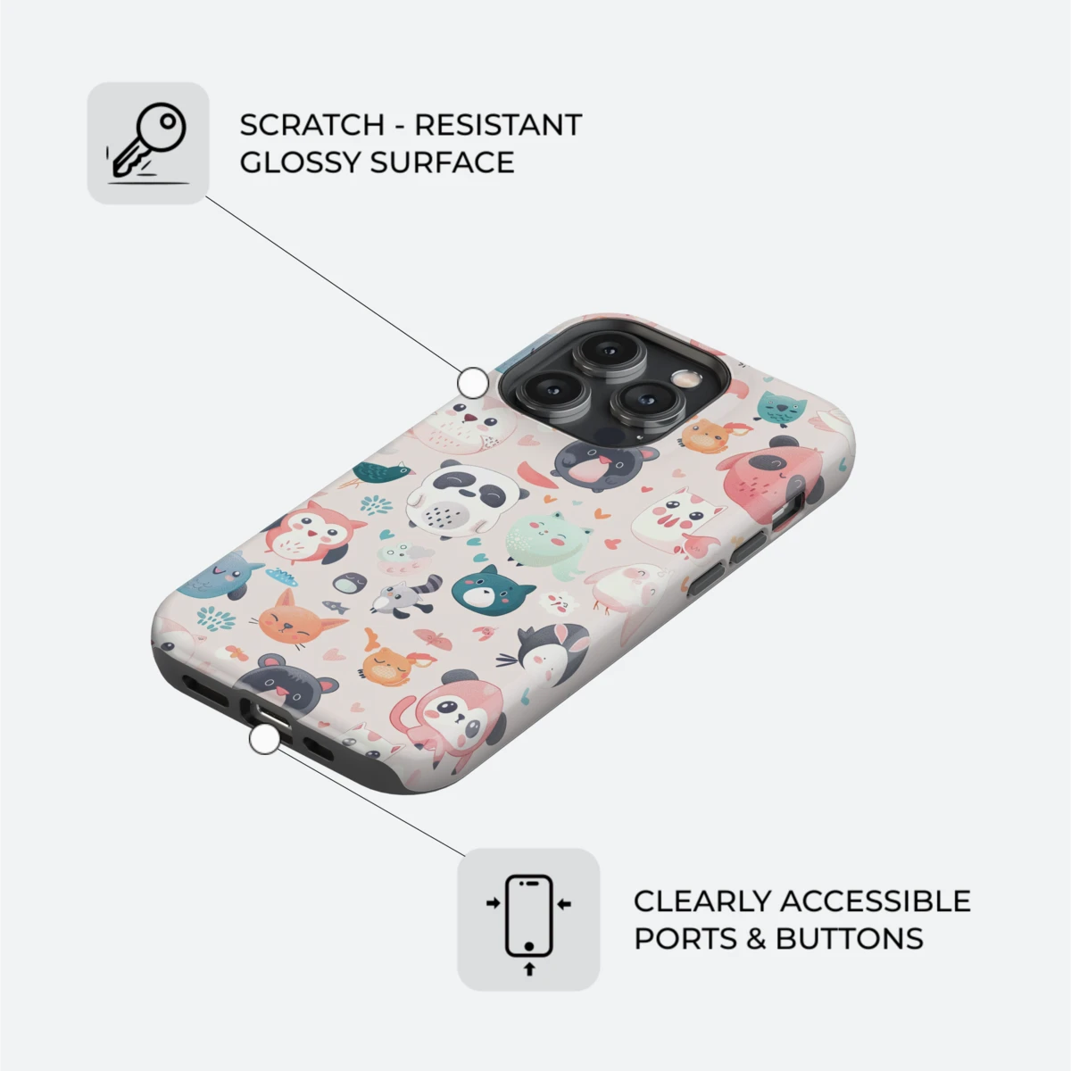 Cute animals stickers iPhone case - Aesthetic cover
