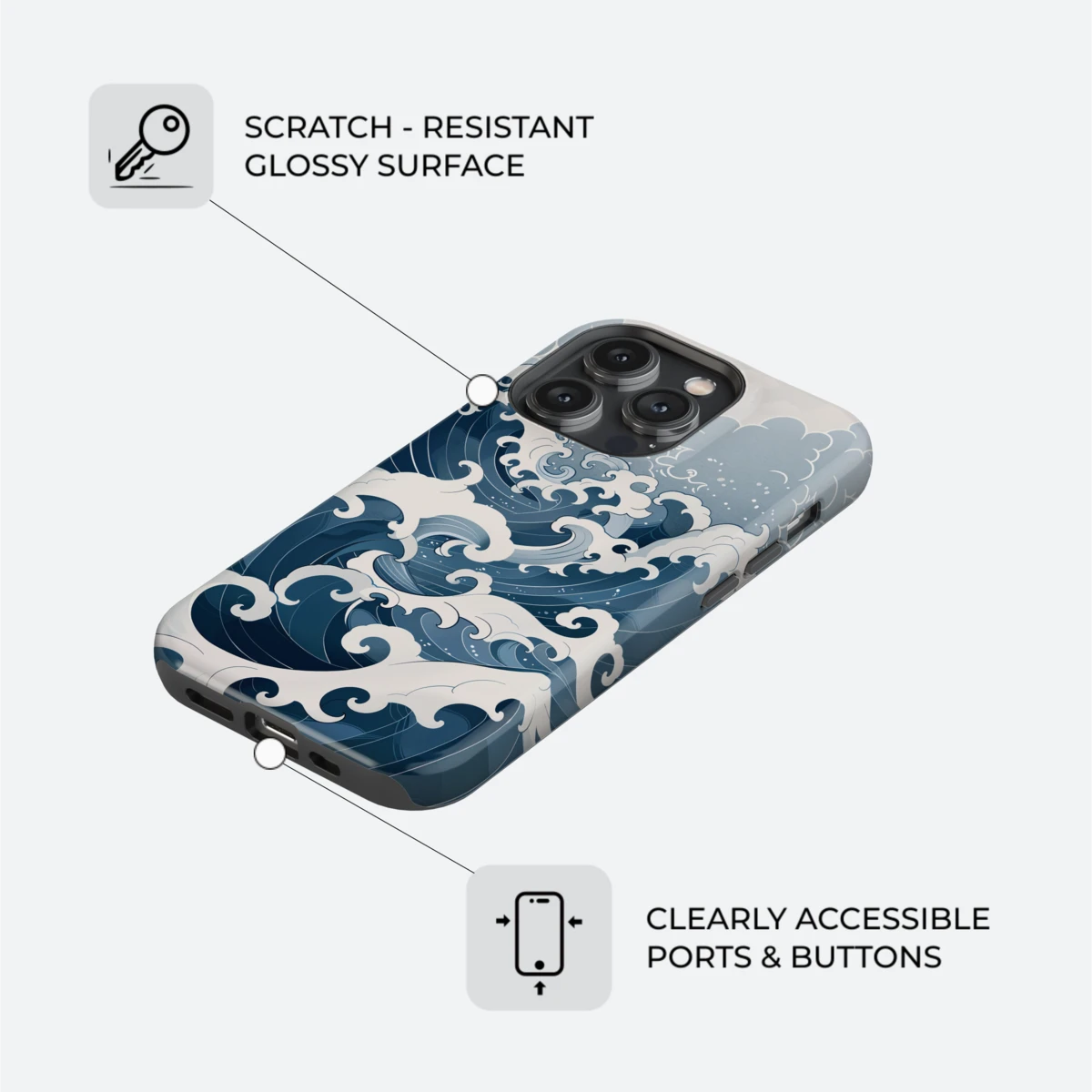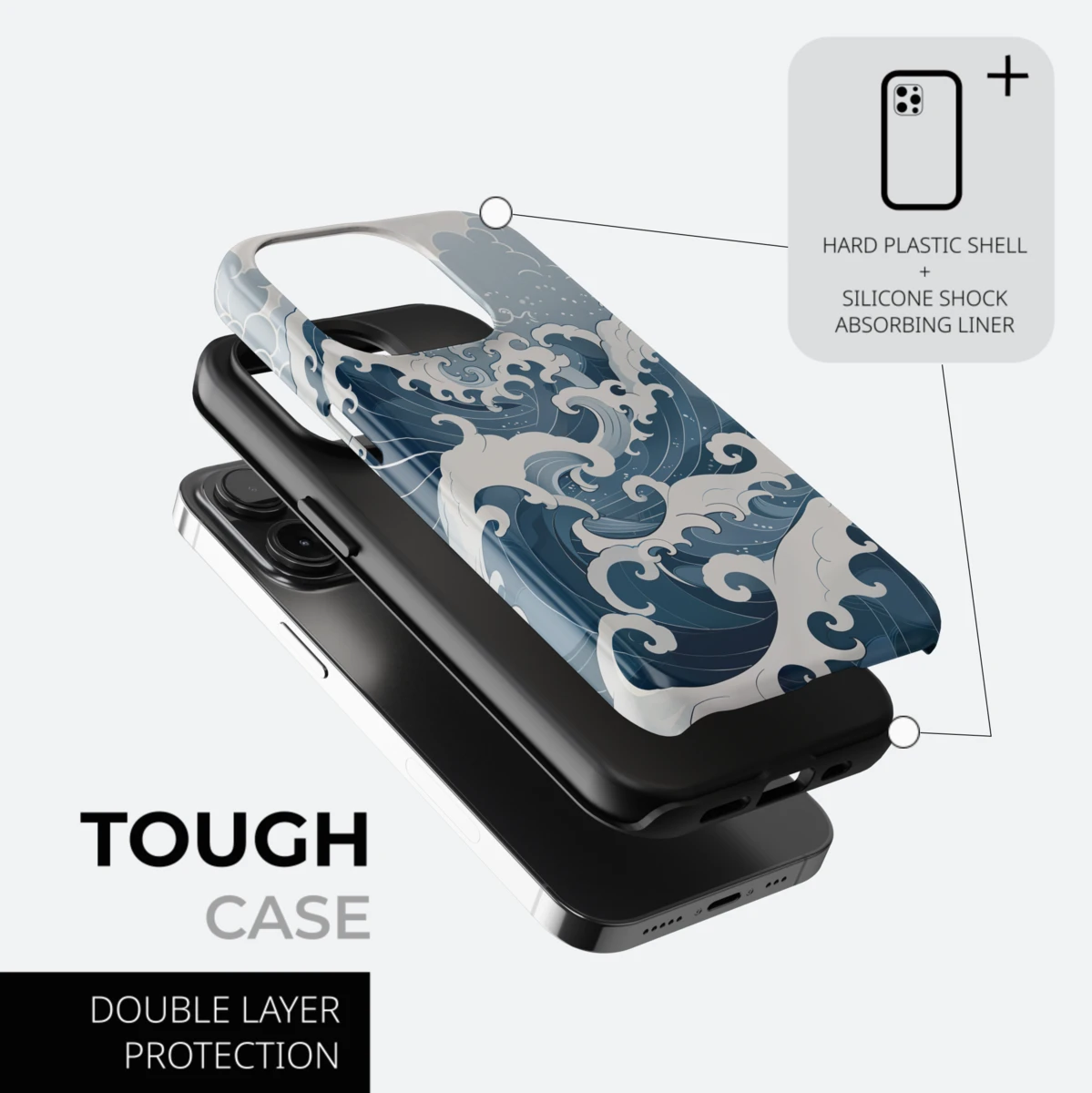Japanese Wave iPhone Case - Abstract Blue Cover, The Great wave off Kanagawa